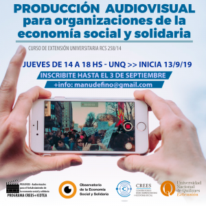 El Taller de producción audiovisual para organizaciones de la economía social y solidaria es un curso de extensión universitaria libre y gratuito que va a mejorar tus prácticas audiovisuales. Vas a aprender a filmar con tu celular, a editarlo y también haremos mucho incapié en la publicación y circulación de los videos en la Redes Sociales. ¡No tu quedes afuera!